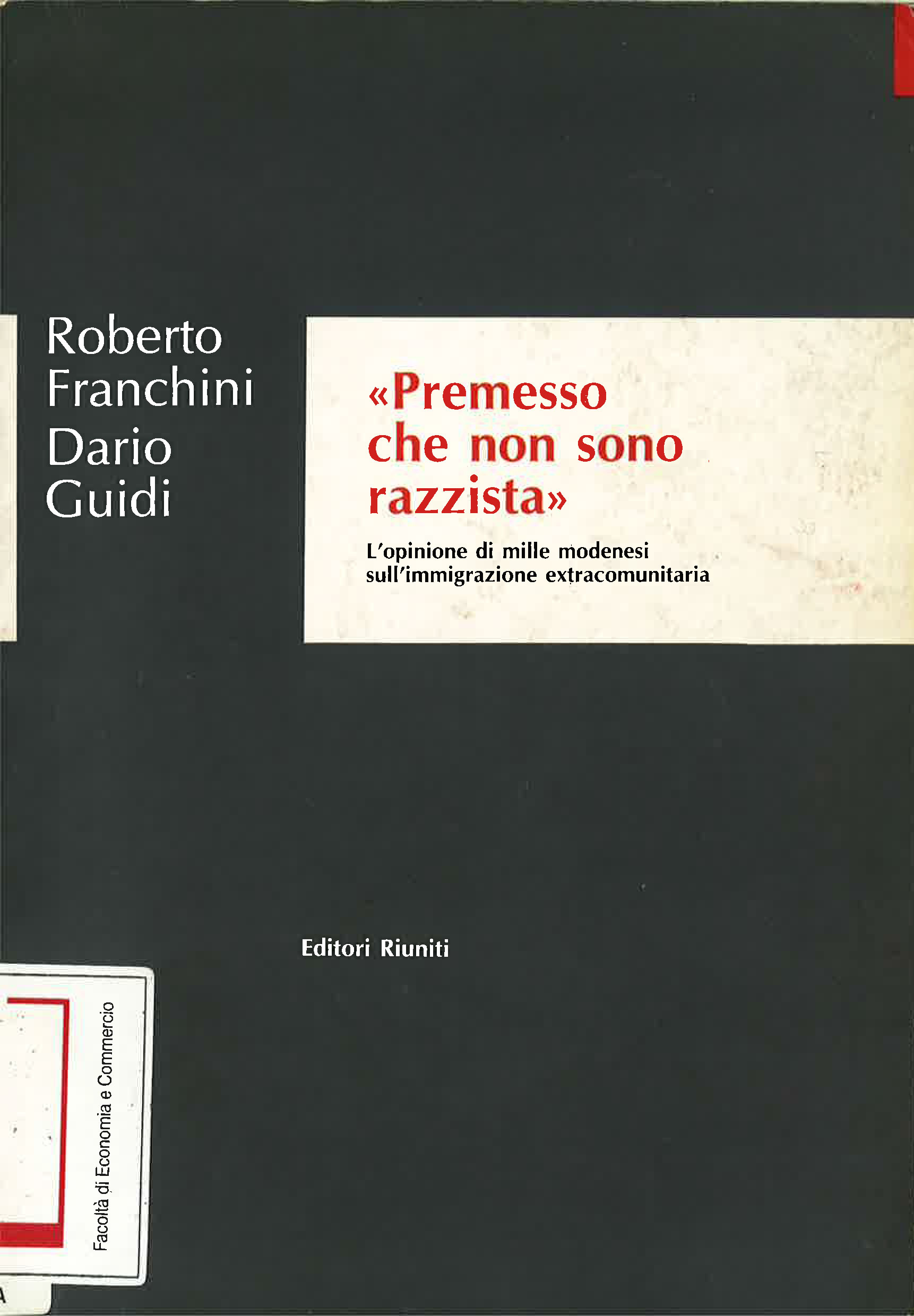 Premesso che non sono razzista. Lopinione di mille modenesi sullimmigrazione extracomunitaria, Roma, Riuniti, 1991